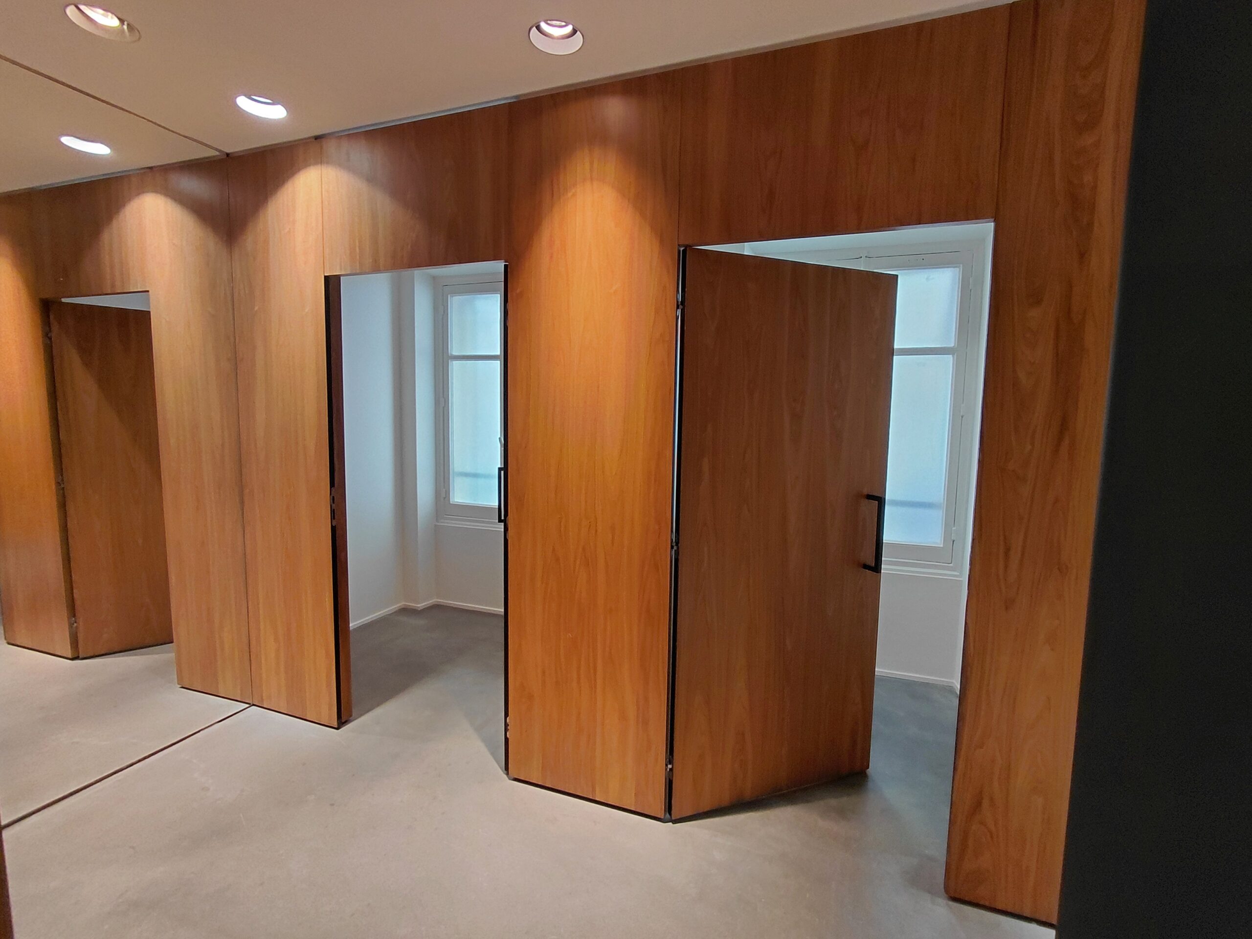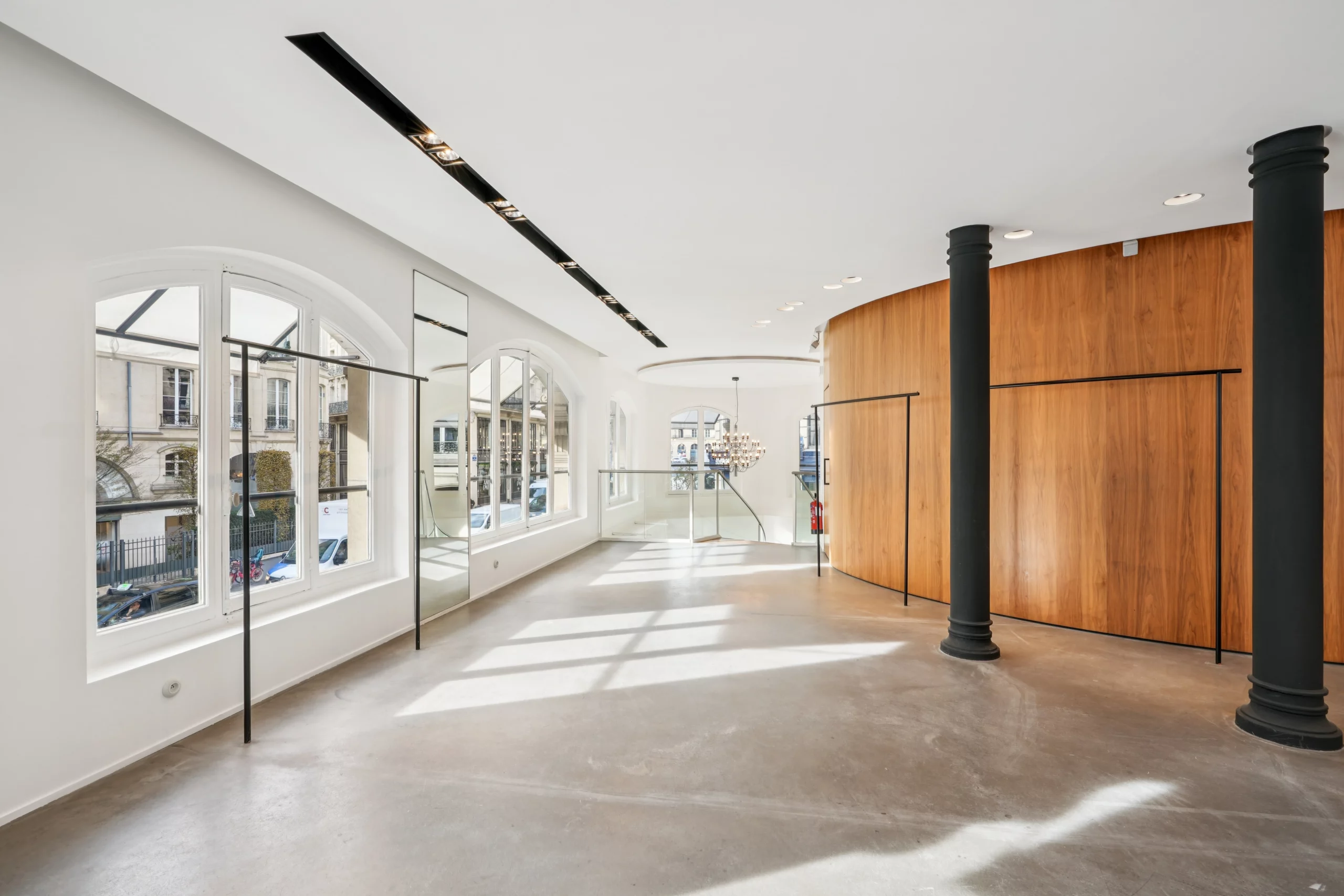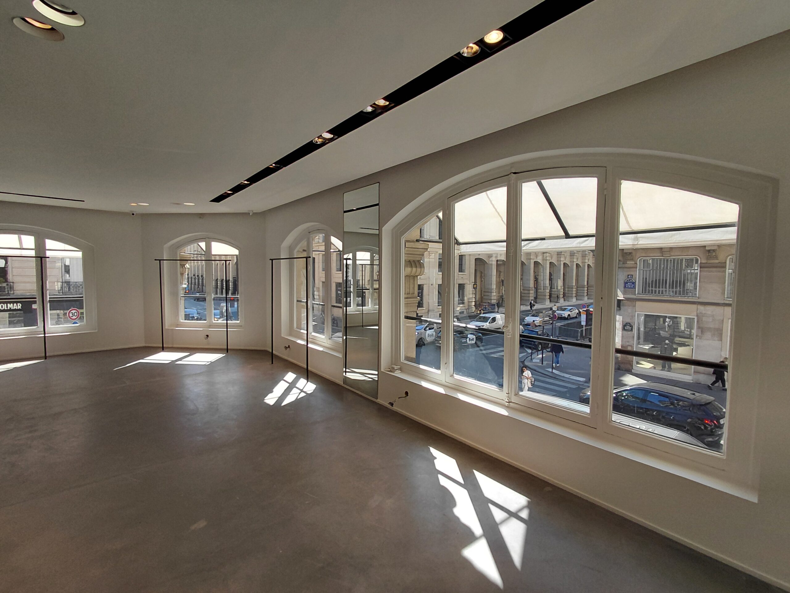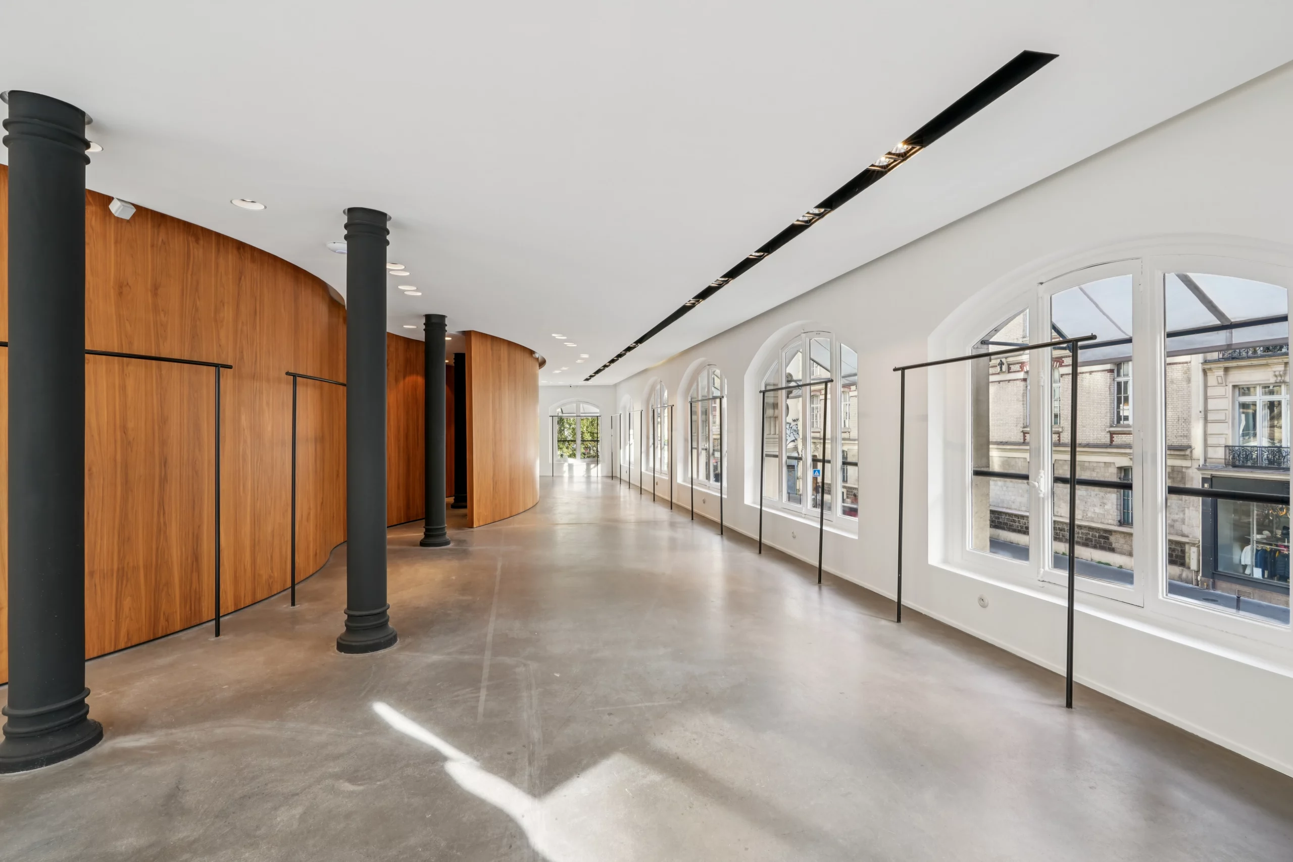 La facciata di questa boutique d’angolo si distingue per i suoi 10 metri di vetrine, che offrono una visibilità eccezionale su Rue du Louvre e Rue Étienne Marcel. È composta da un piano terra di 45 m² e da un primo piano di 150 m², di cui 120 m² di spazio vendita e 30 m² di magazzino e cabina.