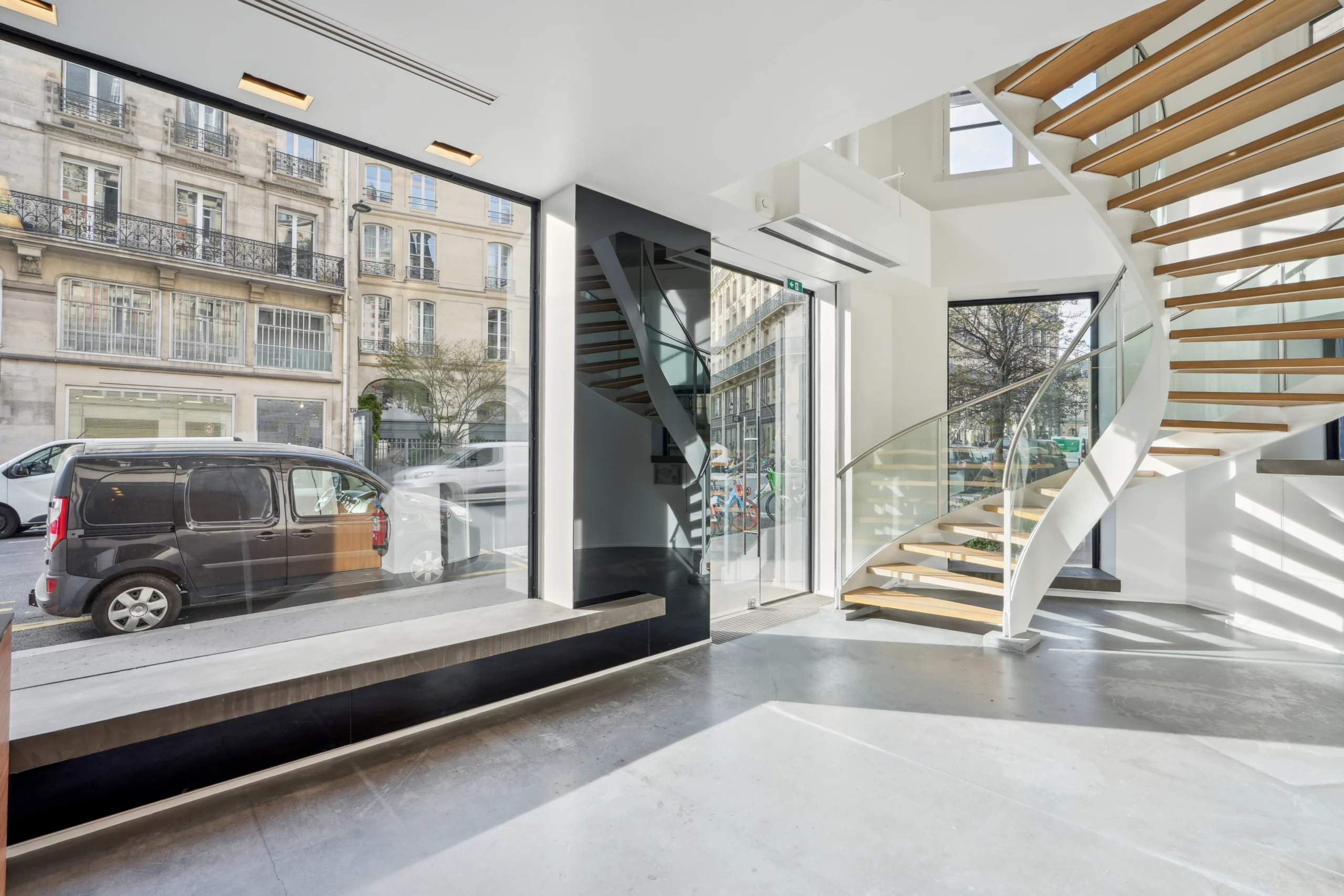 Il piano terra, completamente aperto, consente un’esposizione ottimale dei prodotti grazie alle sue vetrine lineari. Il primo piano offre uno spazio modulare e luminoso, ideale per ospitare uno showroom o un’area espositiva.